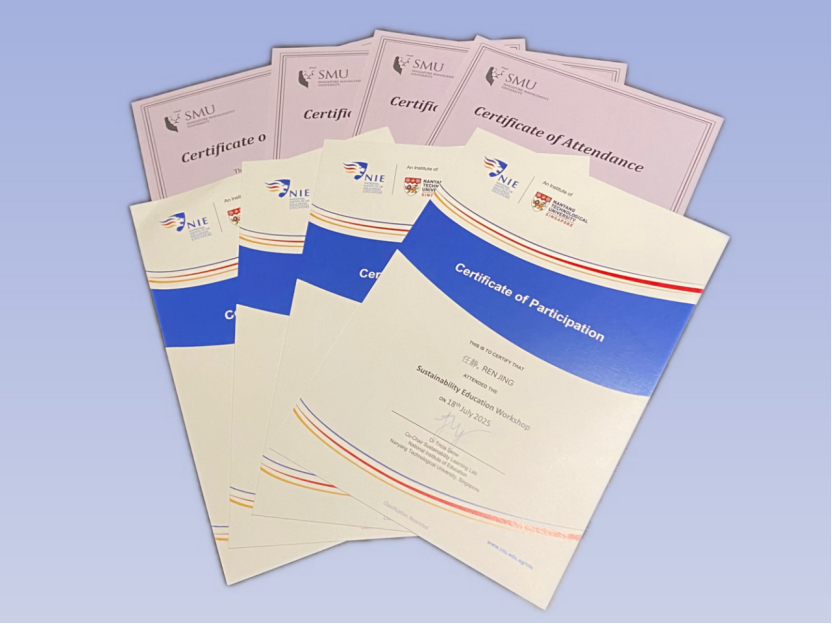 在为期数天的密集培训和实地考察中,我校教师团深入学习了人工智能在教育领域的创新应用及高等教育人才管理的先进经验。行程尾声,代表团举行了简朴而隆重的结营仪式,每位参访教师均获得了由南洋理工大学国立教育学院及新加坡管理大学颁发的结课证书,以表彰老师们的积极参与和认真学习。