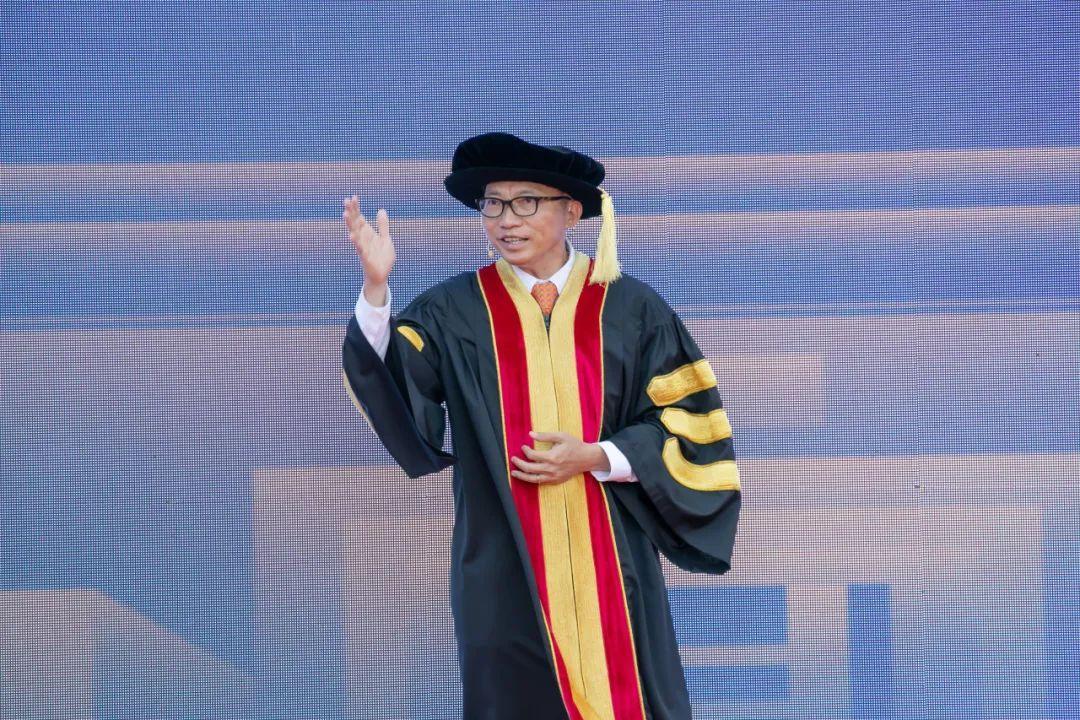 武汉学院创办人、校董会主席陈一丹先生发表毕业致辞,以恢宏的历史视野,深刻剖析当今世界深层变革与政治、经济、科技三重叠加的历史级“周期风暴”,并为毕业生们献计打气:“你们在一个充满不可预测性的环境中,纵身跃入变化的世界,保持前行本身需要勇气。今天我为大家鼓劲加油而来!”