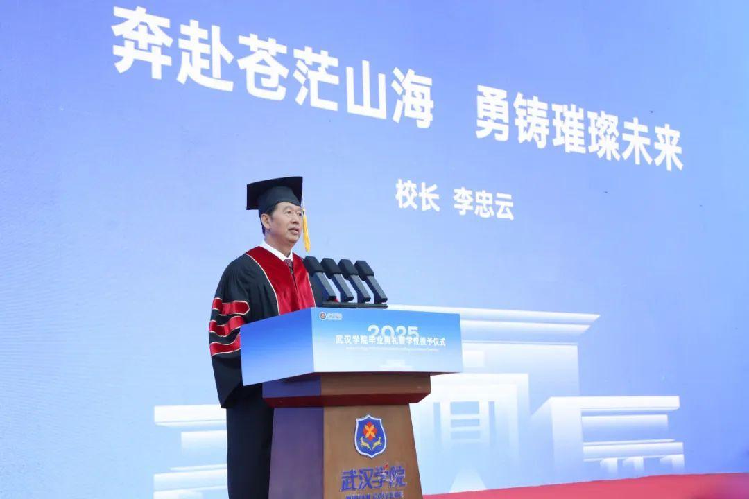 “青春肆意生长,学子意气飞扬,”校长李忠云教授在致辞中寄语毕业生“在人生赛道上勇往直前、急流勇进、奋勇争先,将个人奋斗融入民族复兴伟业,用青春热血铸就强国建设之梦”。