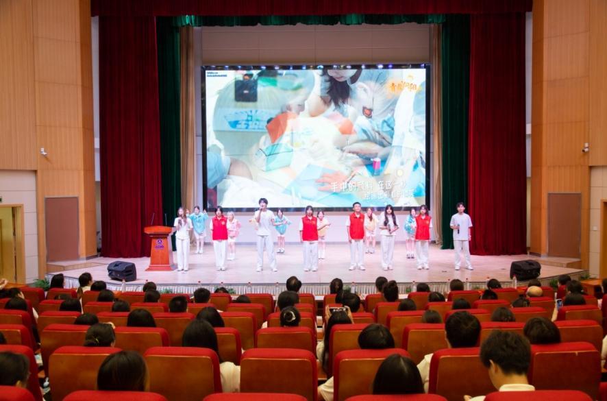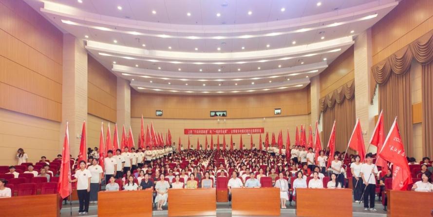 仪式上,学生代表的铮铮誓言传递青春担当,情景剧《我们的志愿日记》和原创歌曲《青春向阳》生动演绎了奉献与热忱。学校领导将象征使命的旗帜授予给实践团队代表。