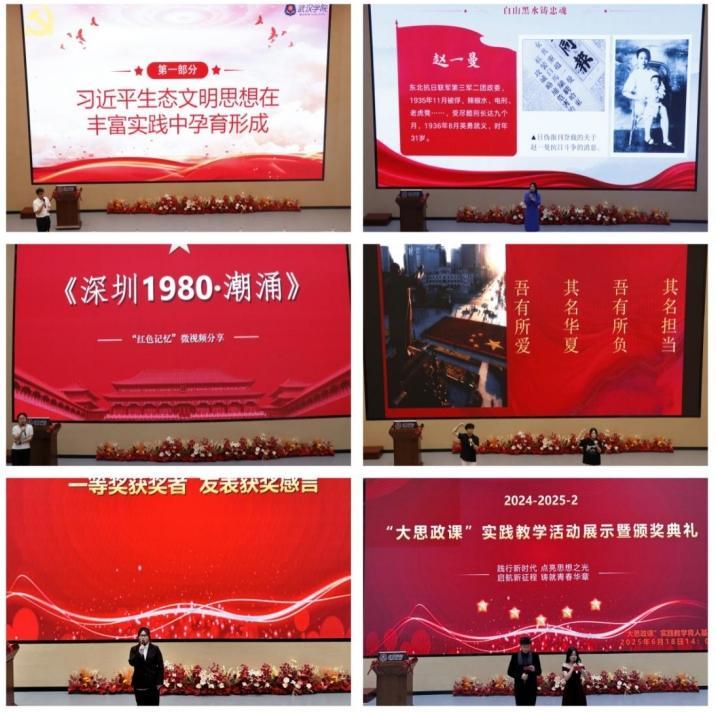 6月18日,武汉学院马克思主义学院在“大思政课”实践教学育人基地举行2024-2025学年第二学期思政课实践教学成果展示暨颁奖典礼。校党委书记陈祖亮及党委组织部、党委宣传部、教务处等部门相关负责人出席。