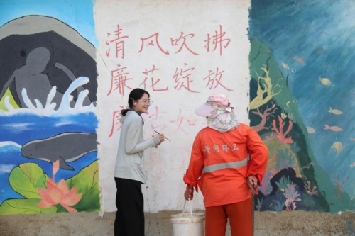 活动执行期间,当地日间气温持续攀升至 35℃以上,高温导致颜料易干结,给户外创作带来不小挑战。志愿者们无惧酷暑,坚持露天作业;夜幕降临后,又借着灯光细致打磨细节,同时克服蚊虫侵扰的困扰。暖心的是,社区环卫工主动送来水桶等工具提供支持,形成公益行动与居民互动的温情场景,让善意在协作中不断传递。