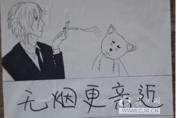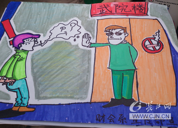 据悉,这是该校财会系学生会的作品。财会系的学生用一个下午的时间绘制了这些漫画,贴在了各系的主要教学楼门口。这些漫画运用了不同的元素,有以黑白为主色的,也有以颜料和彩色铅笔画出来的漫。画中内容多为卖萌的烟头、流汗的吸烟人以及受烟熏的动物。